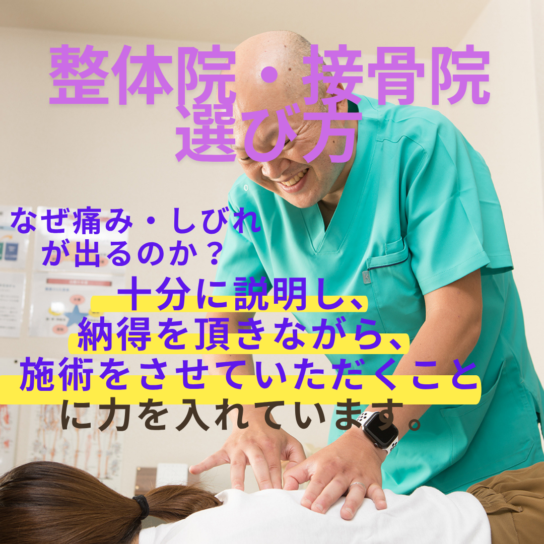 痛みの原因は人それぞれ。だからこそ、初回からいきなり“同じ流れの施術”ではなく、あなたの身体の状態を評価し、原因仮説を立て、施術後に再評価して次回の計画を調整することが重要です。複数店舗ある整体院や接骨院はそのような傾向があるともいます。