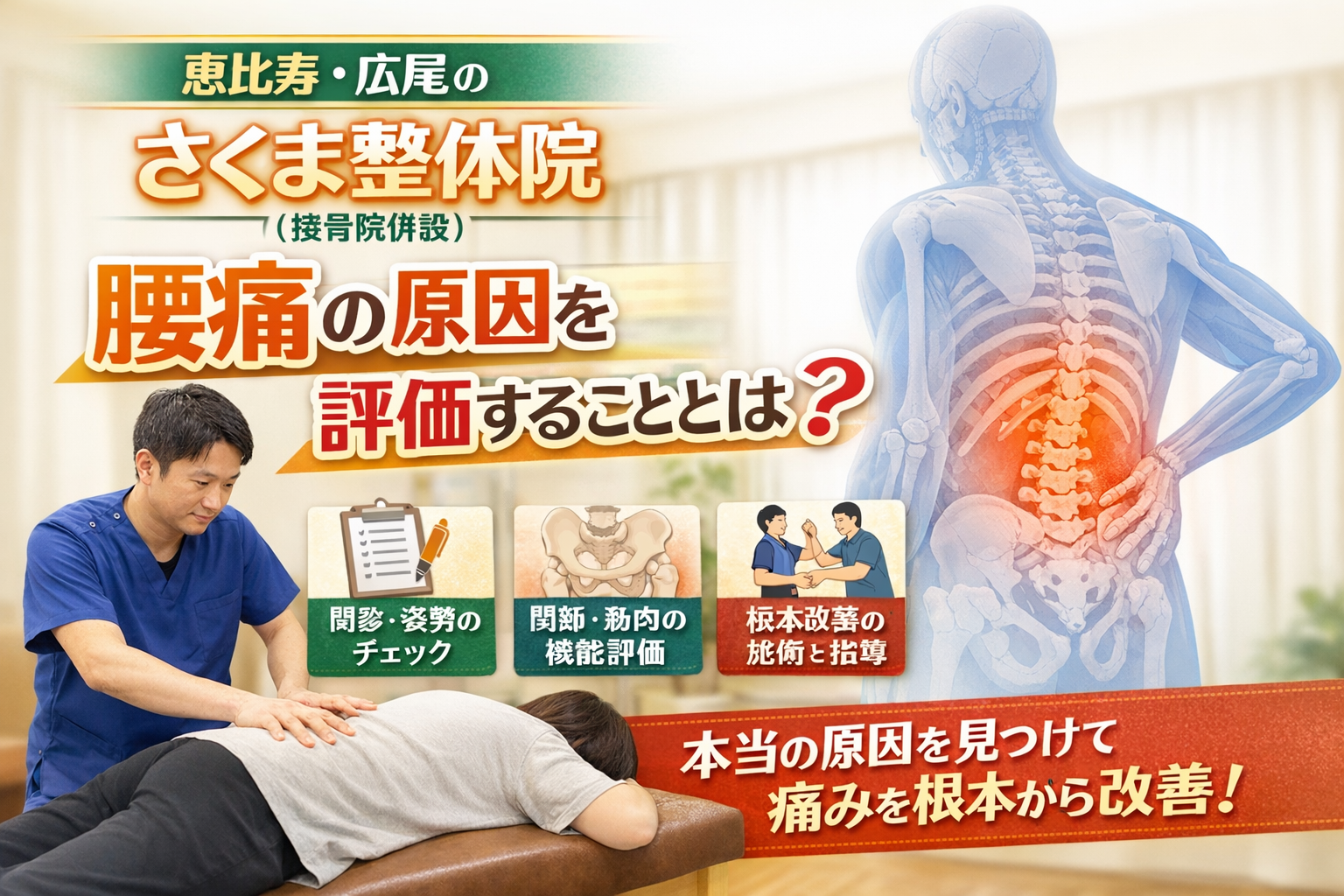 「腰痛の原因を丁寧に評価する」とは何をすること?恵比寿・広尾にあるさくま整体院(接骨院併設)