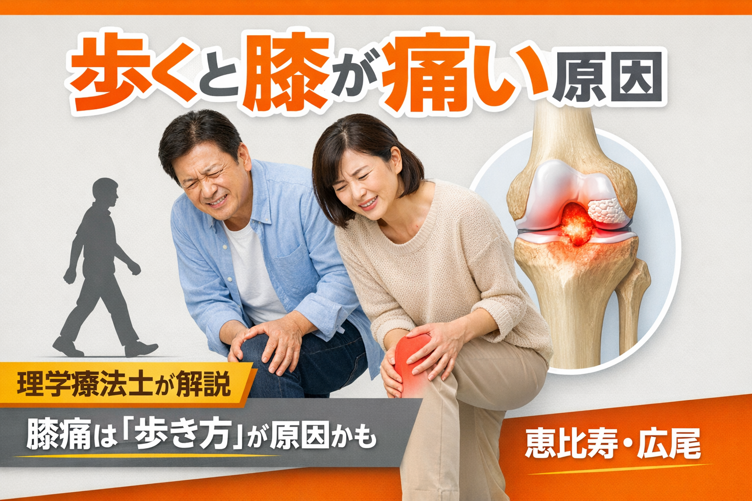 膝の内側が痛い…。この症状は恵比寿・広尾エリアでも40〜50代の方を中心によく相談を受ける悩みです。
