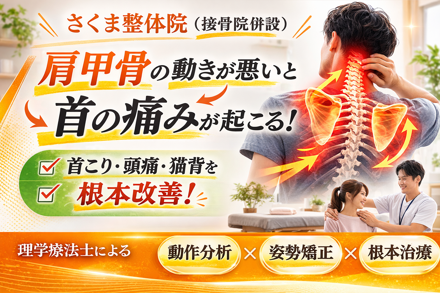 一時的には楽になりますが、根本改善には肩甲骨の機能改善が必要です。