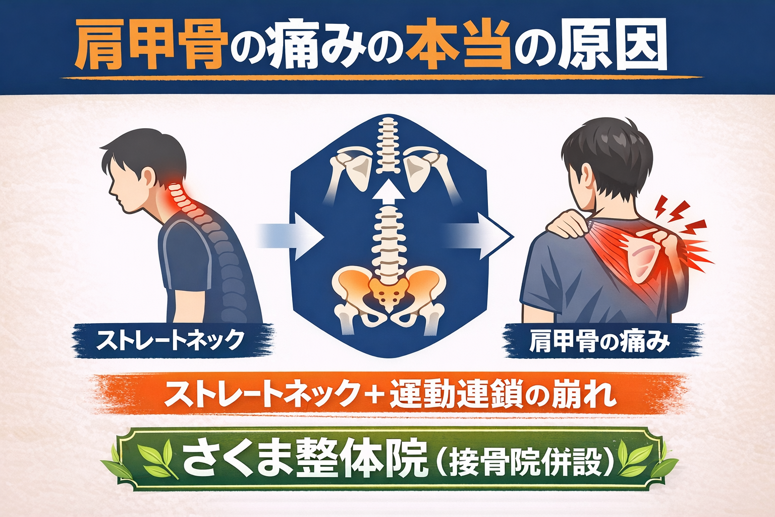ストレートネックで肩甲骨が痛いのはなぜ?運動連鎖から本当の原因を解説「恵比寿・広尾にあるさくま整体院(接骨院併設)」